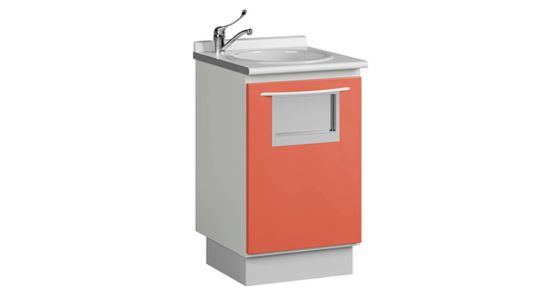 Медицинская тумба А-10МО с мойкой из акрила, смесителем, люком и корзиной для мусора.