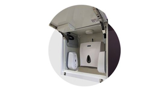 Модуль подвесной гигиенический с сенсорными диспенсерами для антисептиков, жидкого мыла и бумажных полотенец.