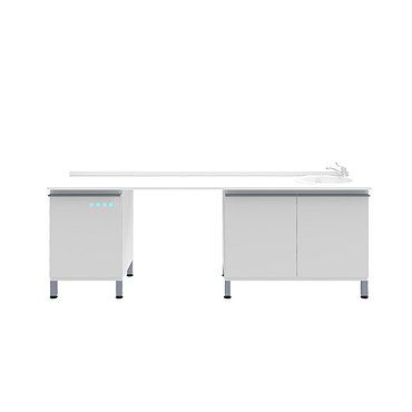Комплект мебели включает в себя: Модуль с акриловой мойкой слева(П-10М), модуль с дверцей и полкой(П-10) и бактерицидный модуль(П-12Б).